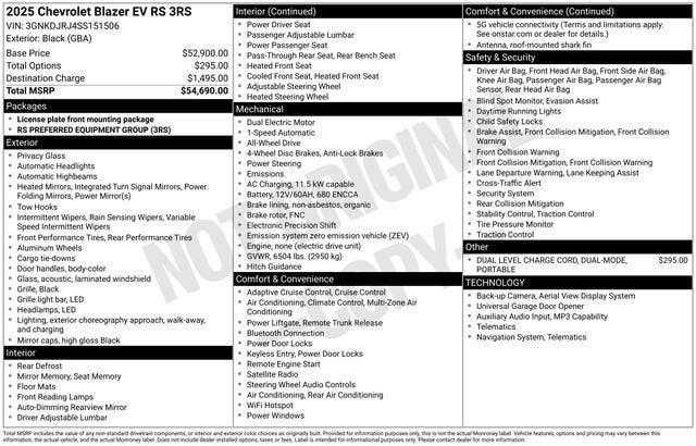 The Blazer EV RS is packed with a wealth of advanced features that elevate the driving experience. The 17.7-inch diagonal advanced color LCD display puts a wealth of information and connectivity at your fingertips, while the 6-speaker audio system with SiriusXM 360L ensures you can enjoy your favorite tunes on the go. Dual-zone automatic climate control, a power liftgate, and a host of driver-assistance technologies further enhance the vehicle's comfort and convenience.