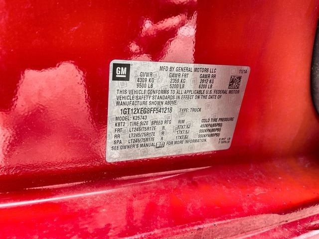 Hitch, 6-Speed Automatic HD Electronic with Overdrive, 4WD, Dark Ash With Jet Black Interior Accents Cloth, 110-Volt AC Power Outlet, 220 Amps Alternator, 3.5 Diagonal Monochromatic Display DIC, Black Outside Manual Mirrors, Black Power-Adjustable Heated Outside Mirrors, Camper & 5th Wheel Trailer Wiring Provisions, Deep-Tinted Glass, Heavy-Duty Trailering Equipment, Integrated Trailer Brake Controller, Navigation System, Power Windows w/Driver Express Up & Down, Provision for Cab Roof-Mounted Lamp/Beacon, Radio: AM/FM Stereo w/4.2 Diagonal Color Display, Rear 60/40 Folding Bench Seat (Folds Up), Remote Keyless Entry, Sierra Convenience Package, Single Slot CD/MP3 Player, Smoked Amber Roof Marker Lamps, Snow Plow Prep Package, Standard Suspension Package, Steering Wheel, Work Truck Package.2015 Fire Red Sierra 2500HD 4WD Odometer is 15124 miles below market average! 6-Speed Automatic HD Electronic with Overdrive Vortec 6.0L V8 SFI Flex Fuel VVT