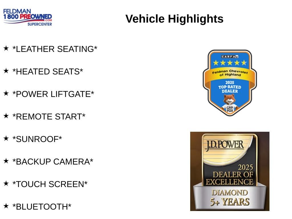 *LEATHER SEATING*, *HEATED SEATS*, *POWER LIFTGATE*, *REMOTE START*, *SUNROOF*, *BACKUP CAMERA*, *TOUCH SCREEN*, *Bluetooth®*, *XM RADIO*, *NAVIGATION*, KEYLESS ENTRY, STEERING WHEEL CONTROLS, CRUISE CONTROL, KEYLESS START.